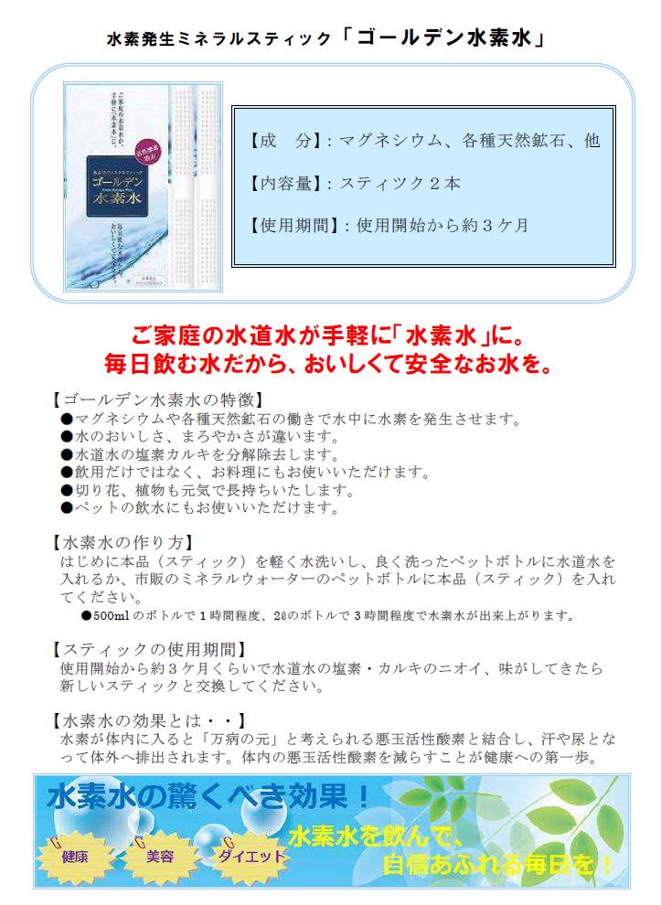 「ゴールデン水素水」は、1箱に水素発生スティックが2本入り