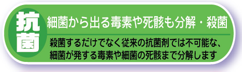 | 食中毒の予防 | 大腸菌・O-157・黄色ブドウ球菌・その他の雑菌類とその 屍骸を分解 |